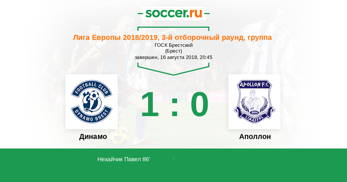 Протокол матча Динамо против Аполлон
