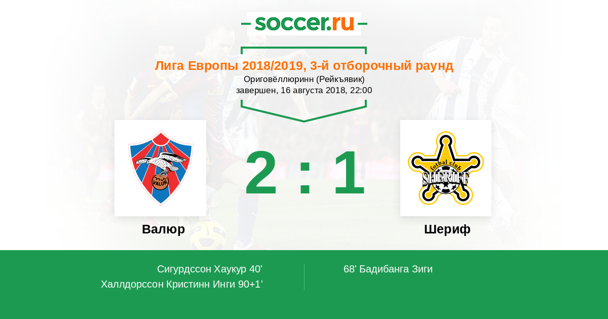 Протокол матча Валюр против Шериф