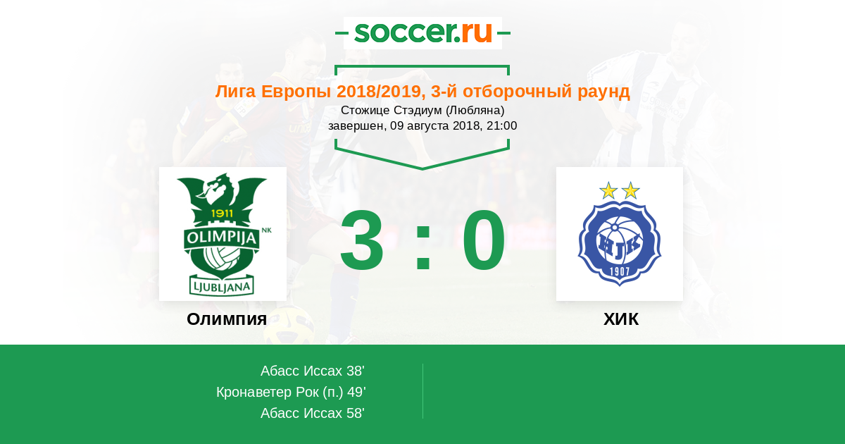 Протокол матча Олимпия против ХИК