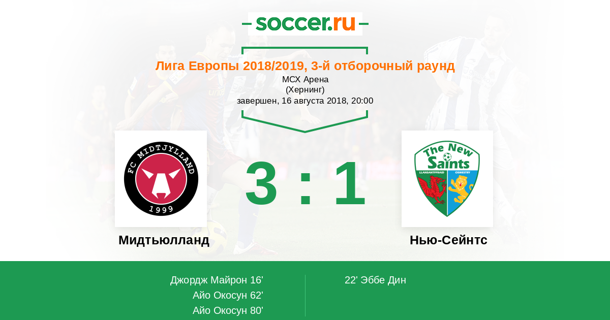 Протокол матча Мидтьюлланд против Нью-Сейнтс