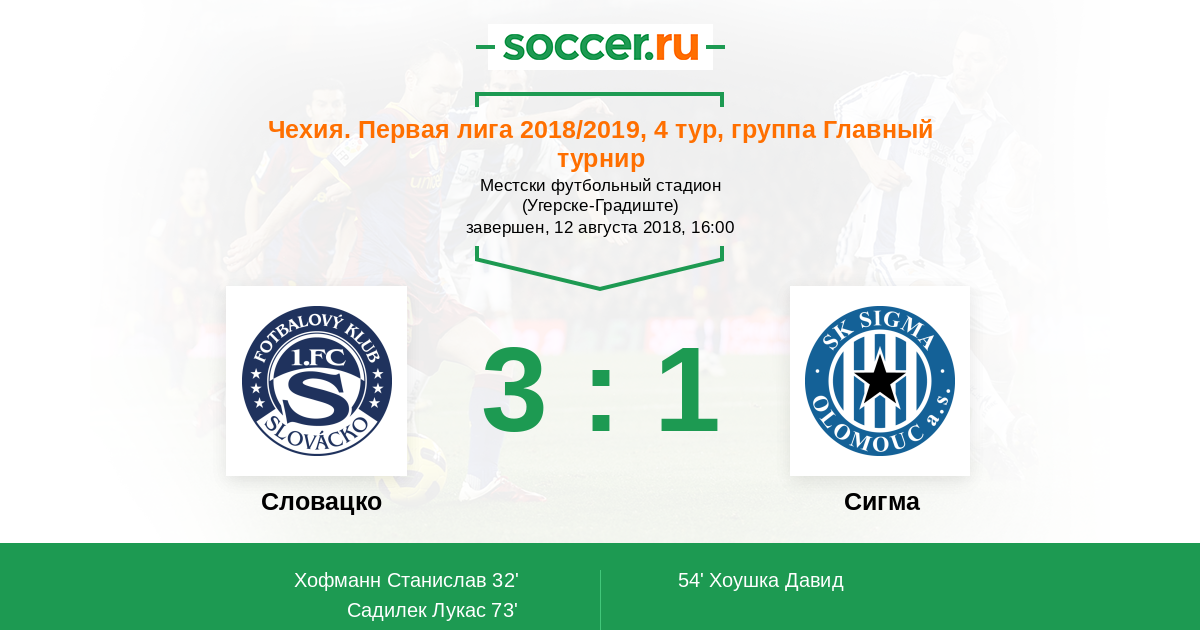 Протокол матча Словацко против Сигма