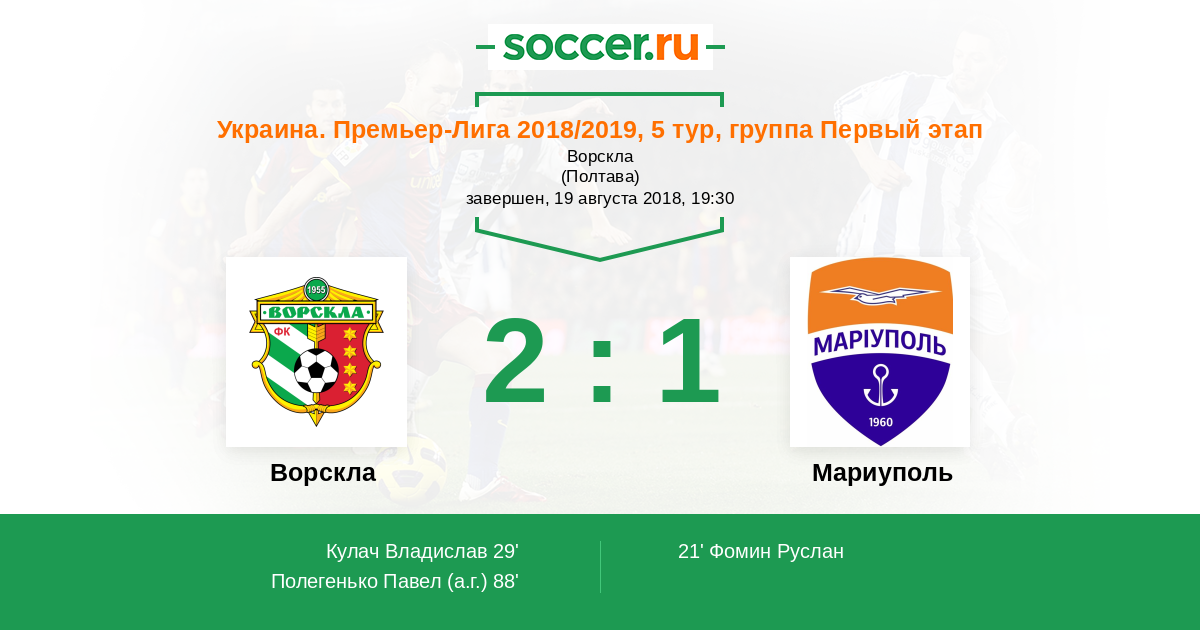 Протокол матча Ворскла против Мариуполь