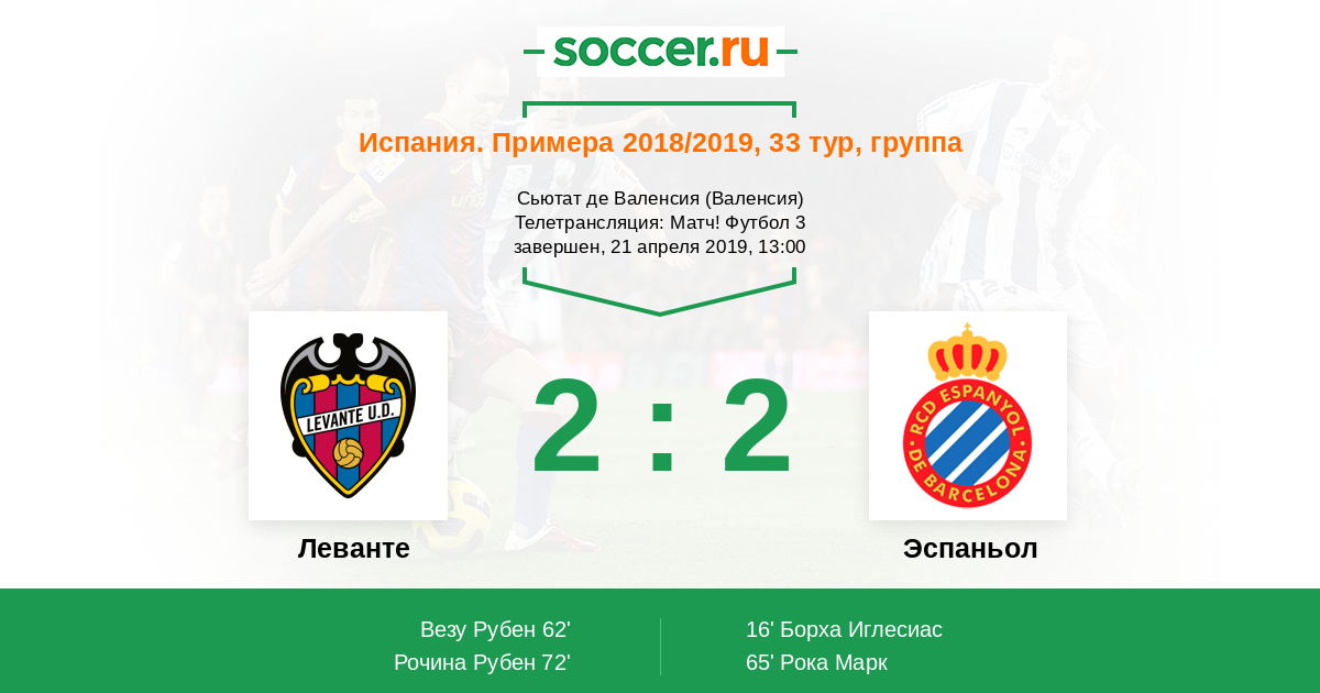 Протокол матча Леванте против Эспаньол