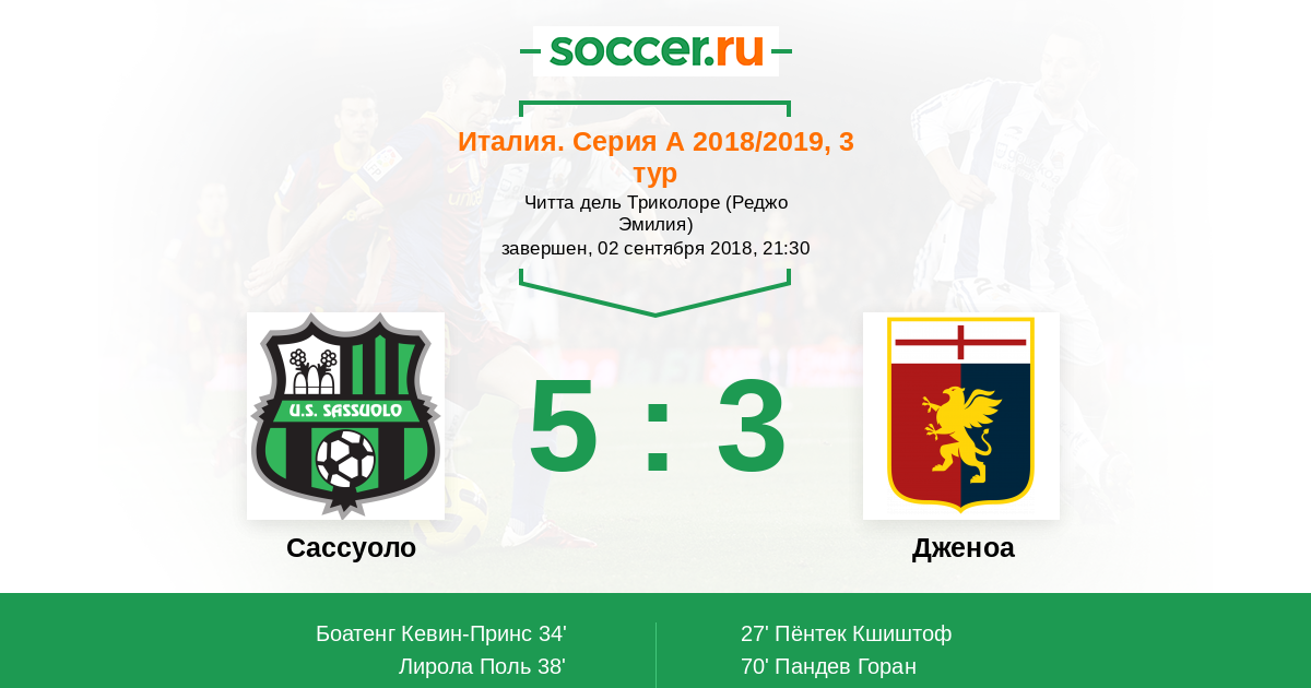 Протокол матча Сассуоло против Дженоа