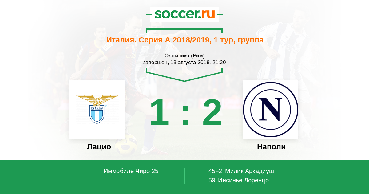 25' (1:0) Иммобиле Чиро (17) (Ачерби Франческо (33))