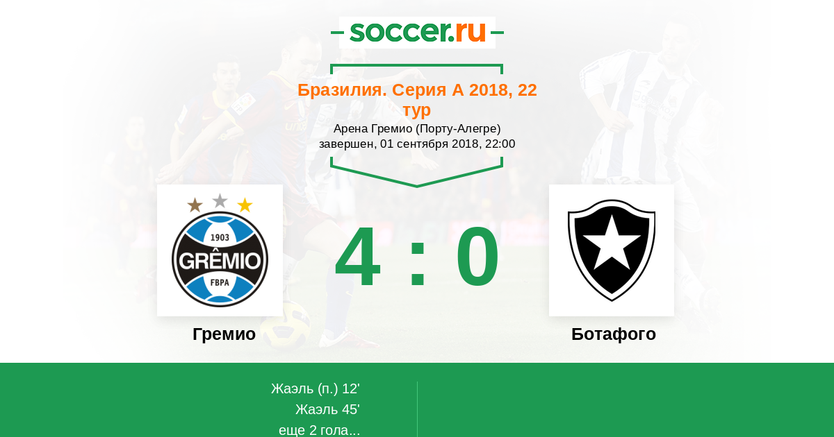 Протокол матча Гремио против Ботафого