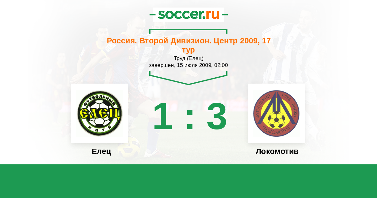 Россия. Вторая лига. Группа 3 15.10.2009 Локомотив Логотип футбольный клуб Локомотив (Лиски) 3:0 Логотип футбольный клуб Елец Елец