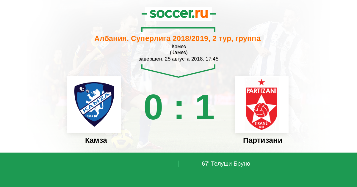 Протокол матча Камза против Партизани