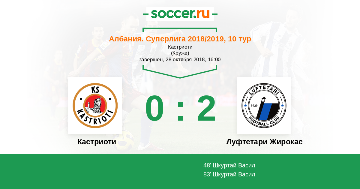 Протокол матча Кастриоти против Луфтетари Жирокас