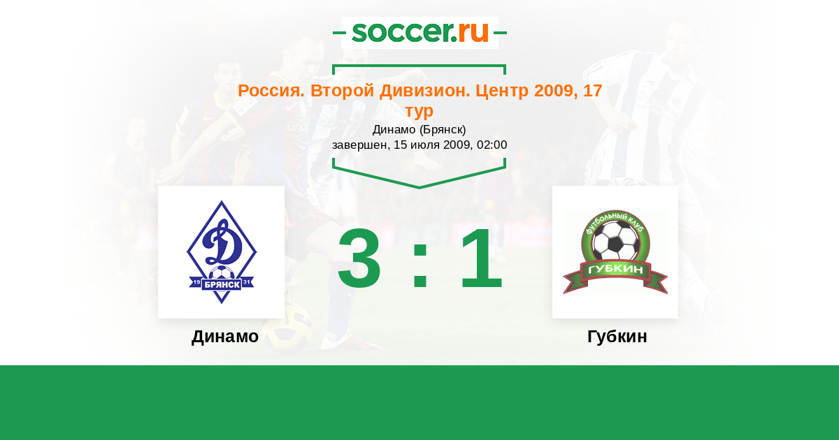Россия. Вторая лига. Группа 3 15.10.2009 Губкин Логотип футбольный клуб Губкин 2:2 Логотип футбольный клуб Динамо Брянск Динамо Брянск