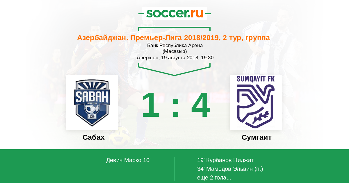 Протокол матча Сабах против Сумгаит