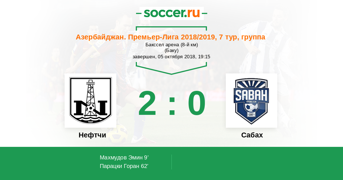 Протокол матча Нефтчи против Сабах