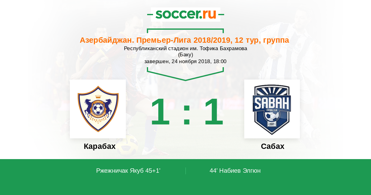 Протокол матча Карабах против Сабах