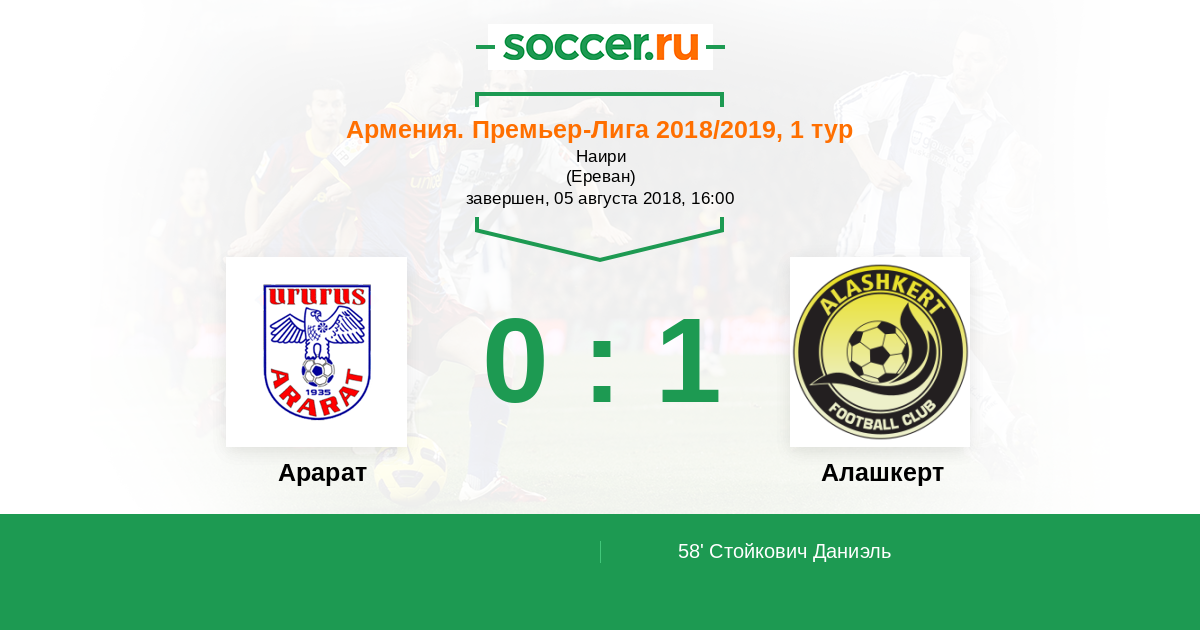Протокол матча Арарат против Алашкерт