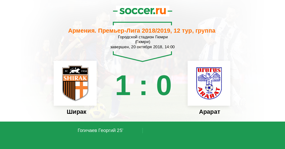 Протокол матча Ширак против Арарат