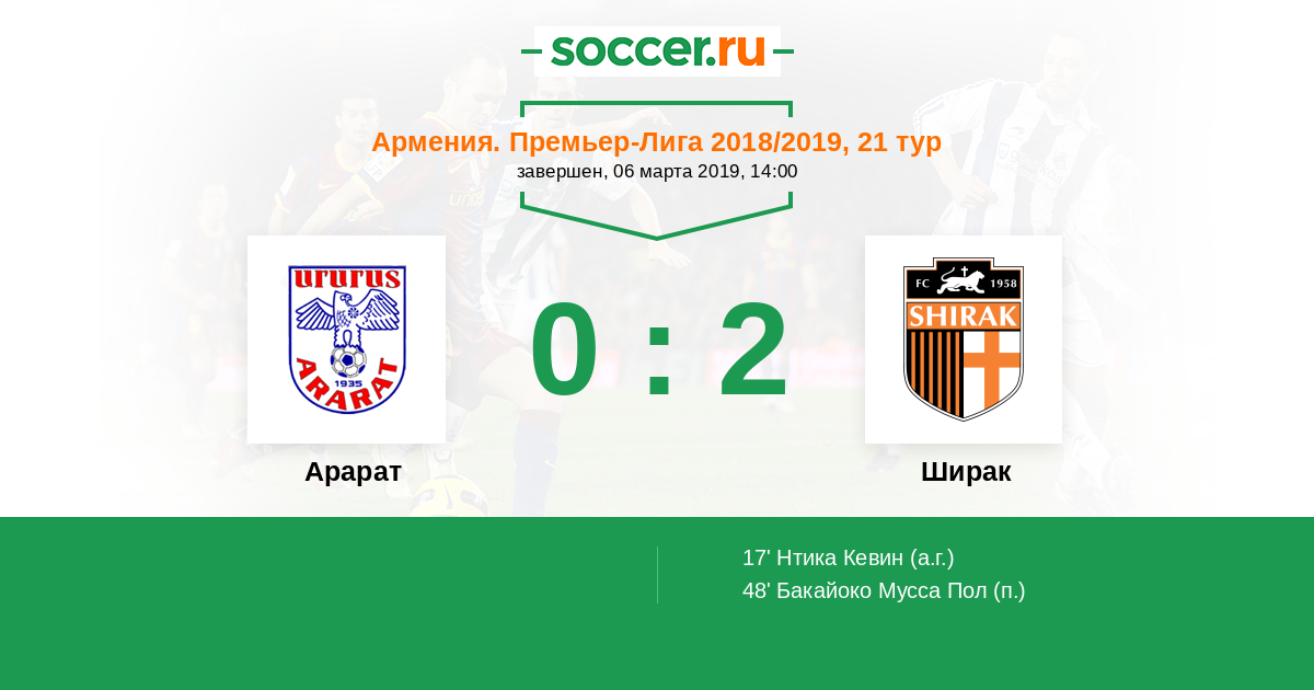 Протокол матча Арарат против Ширак