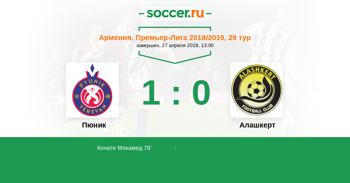 Протокол матча Пюник против Алашкерт