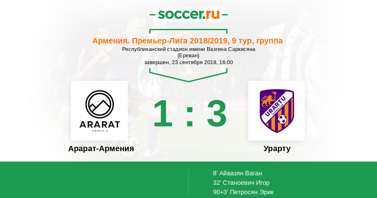 Протокол матча Арарат-Армения против Бананц