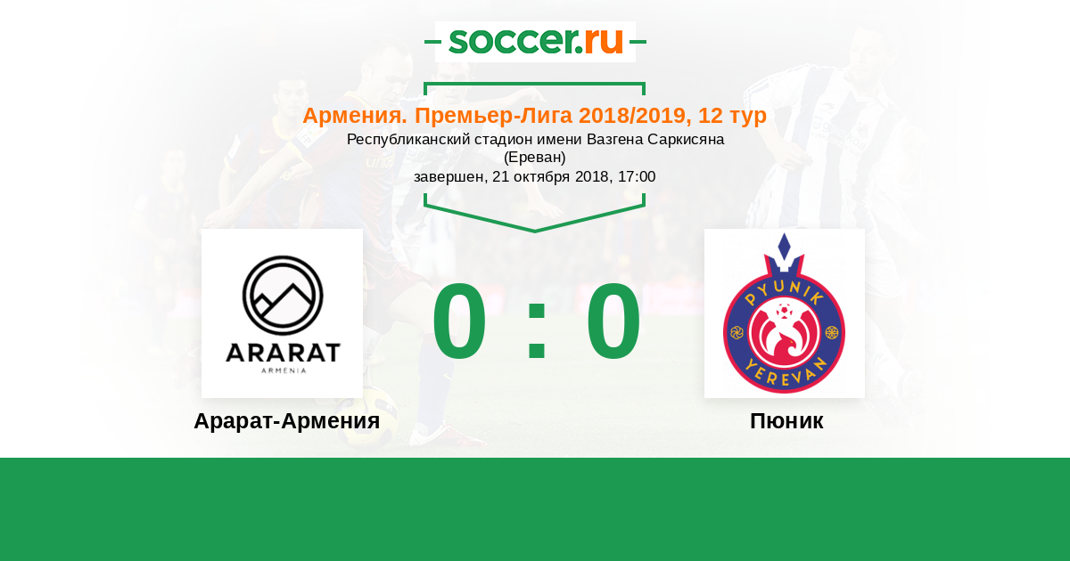 Армения. Премьер-лига 19.08.2018 Пюник Логотип футбольный клуб Пюник (Ереван) 3:1 Логотип футбольный клуб Арарат-Армения (Ереван) Арарат-Армения