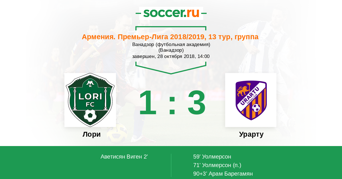 Протокол матча Лори против Бананц