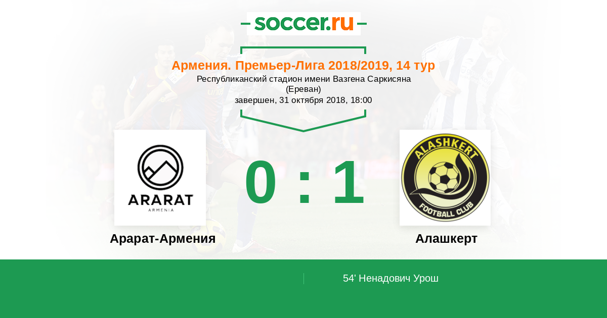 Протокол матча Арарат-Армения против Алашкерт