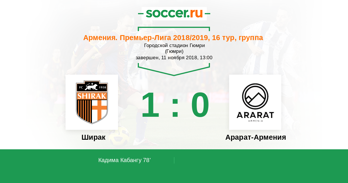 Протокол матча Ширак против Арарат-Армения