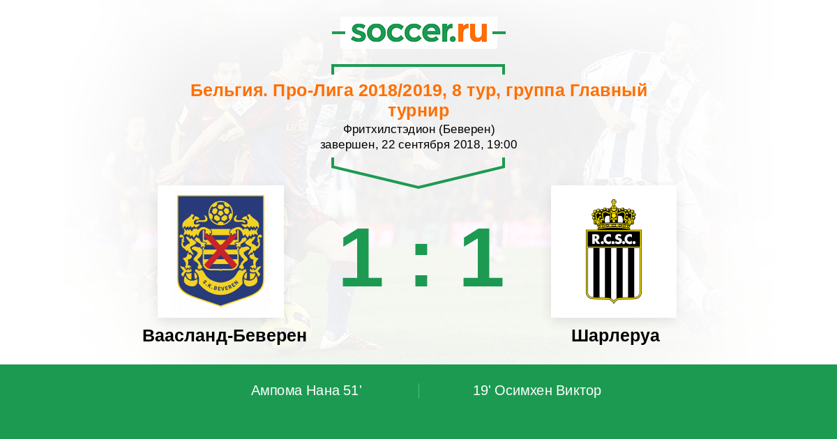 Протокол матча Ваасланд-Беверен против Шарлеруа