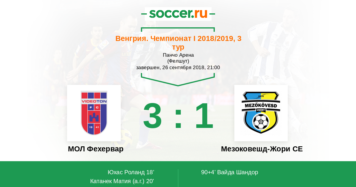 Протокол матча МОЛ Види против Мезоковешд-Жори СЕ