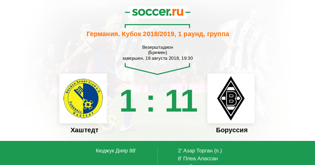 Протокол матча Хаштедт против Боруссия