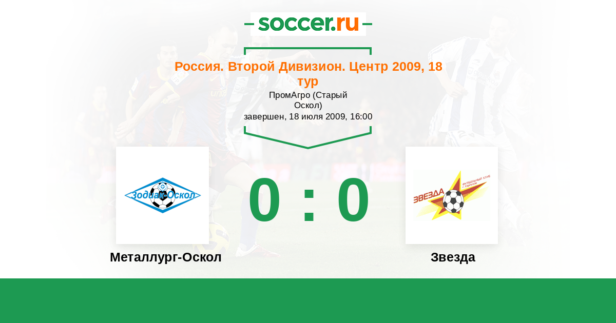 Россия. Вторая лига. Группа 3 18.10.2009 Звезда Логотип футбольный клуб Звезда (Серпухов) 0:1 Логотип футбольный клуб Металлург-Оскол (Старый Оскол) Металлург-Оскол