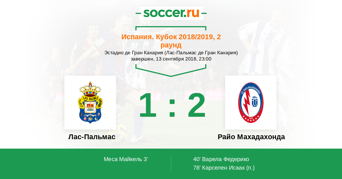 Протокол матча Лас-Пальмас против Райо Махадахонда