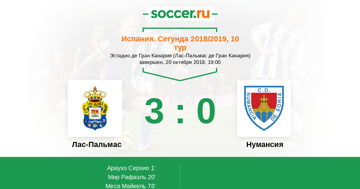 Протокол матча Лас-Пальмас против Нумансия