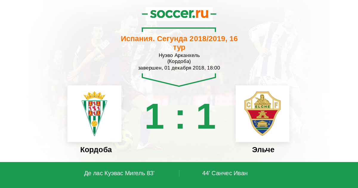 83' (1:1) Де лас Куэвас Мигель (18) (Мартин Андрес (30))