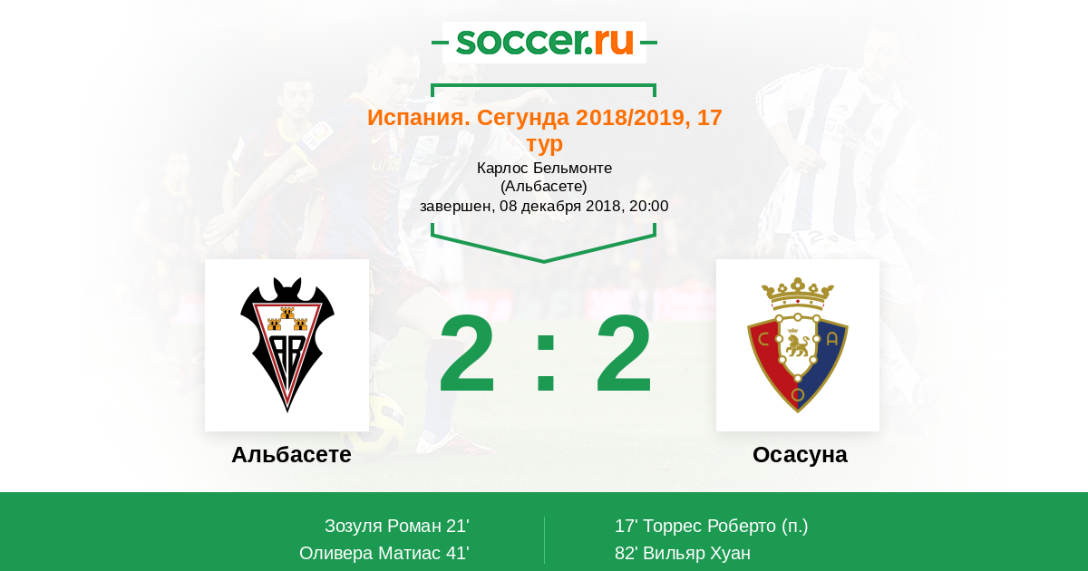 82' (2:2) Вильяр Хуан (18) (Кике Барха (19))