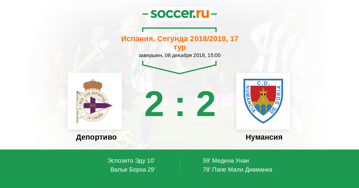 Протокол матча Депортиво против Нумансия