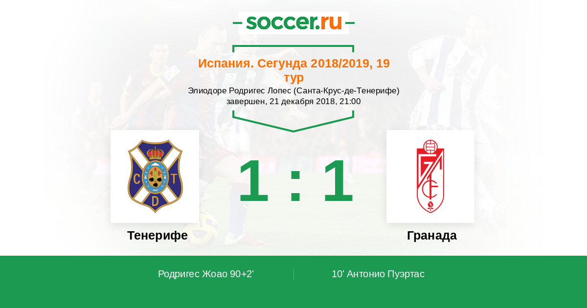 Протокол матча Тенерифе против Гранада