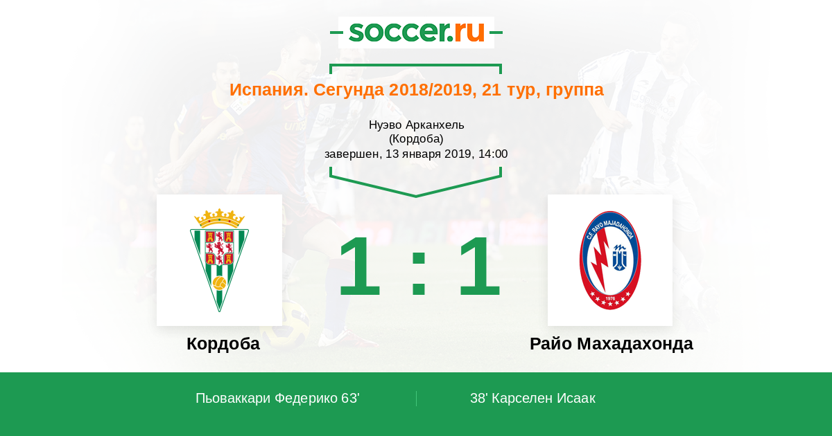 Протокол матча Кордоба против Райо Махадахонда