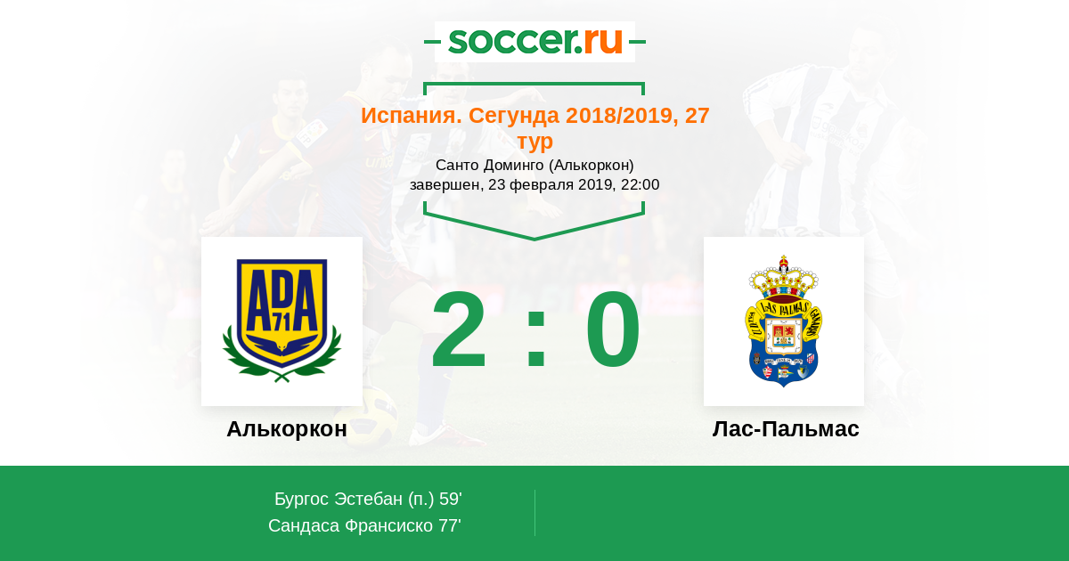 Протокол матча Алькоркон против Лас-Пальмас