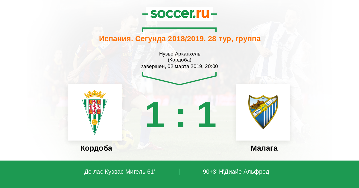 61' (1:0) Де лас Куэвас Мигель (18) (Ромеро Хайме (14))