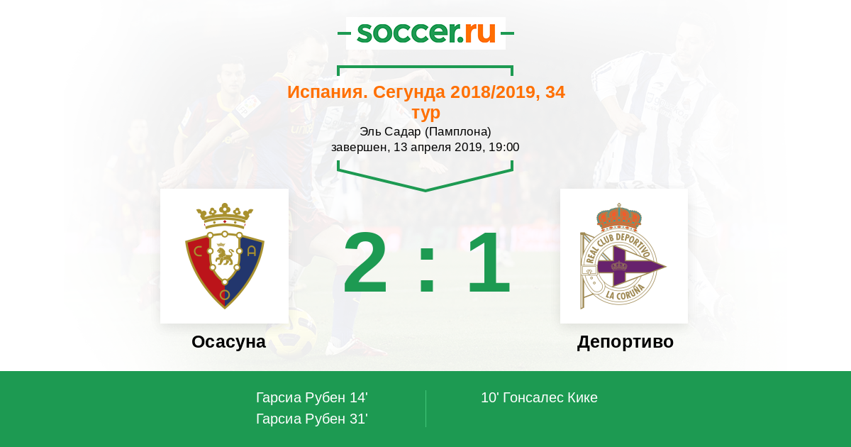 Протокол матча Осасуна против Депортиво