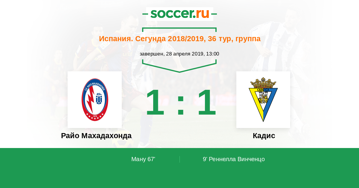 Протокол матча Райо Махадахонда против Кадис