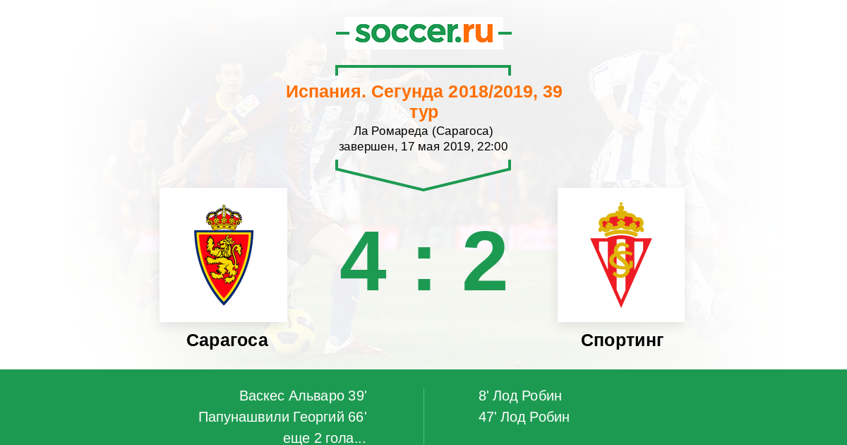 Протокол матча Сарагоса против Спортинг