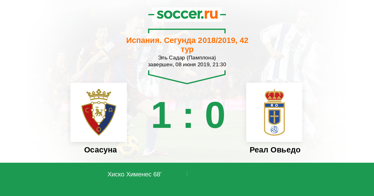 68' (1:0) Хиско Хименес (9) (Гарсиа Рубен (14))