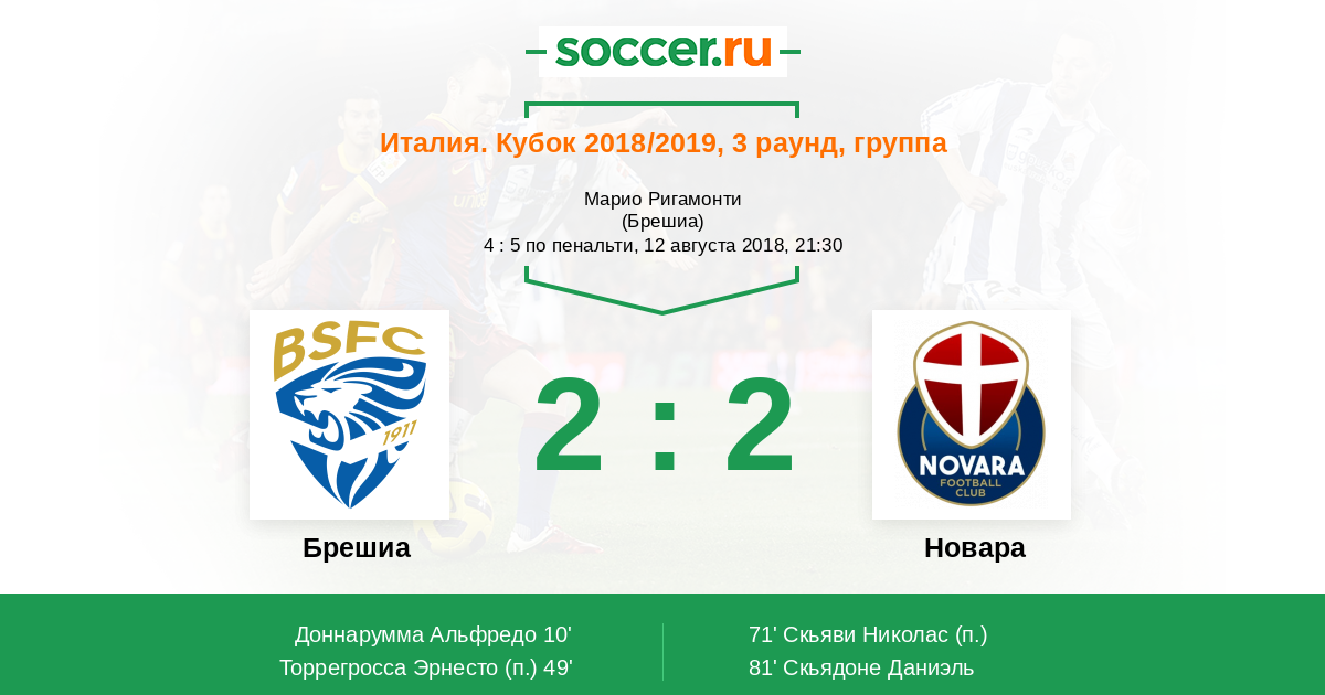 Протокол матча Брешиа против Новара