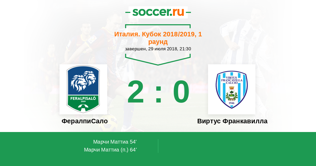 Протокол матча ФералпиСало против Виртус Франкавилла