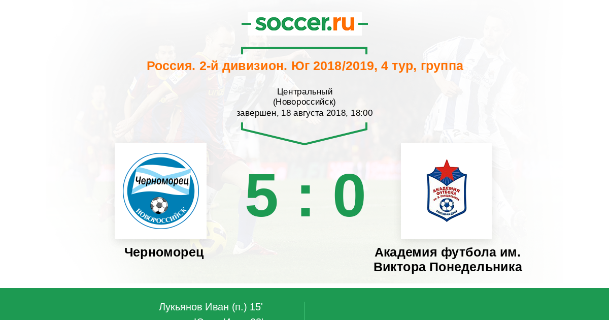 Протокол матча Черноморец против Академия футбола им. Виктора Понедельника