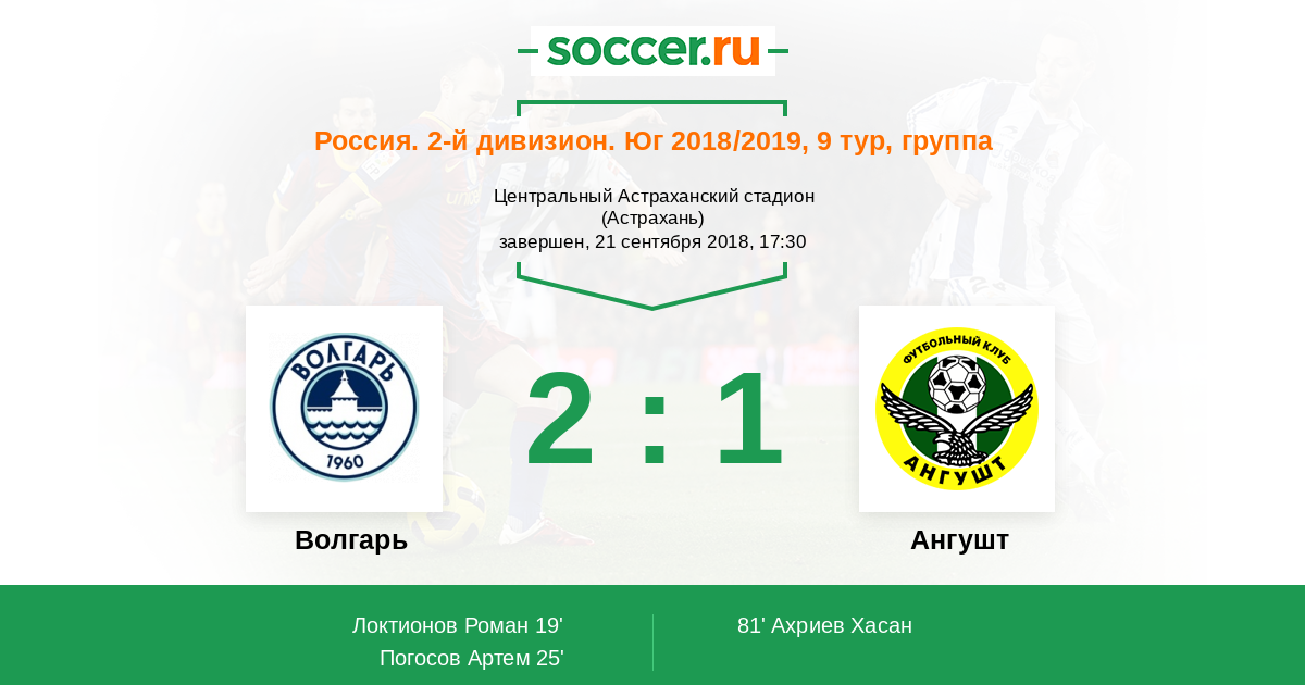 Протокол матча Волгарь против Ангушт