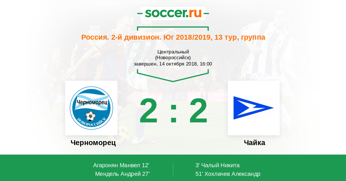 Протокол матча Черноморец против Чайка