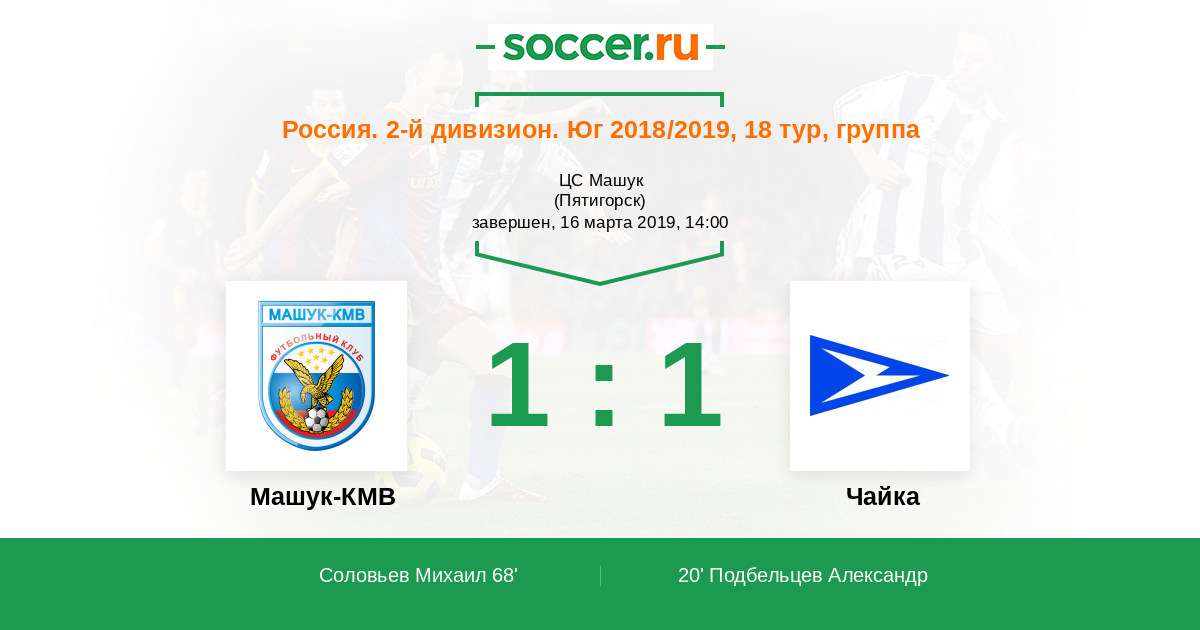 Протокол матча Машук-КМВ против Чайка