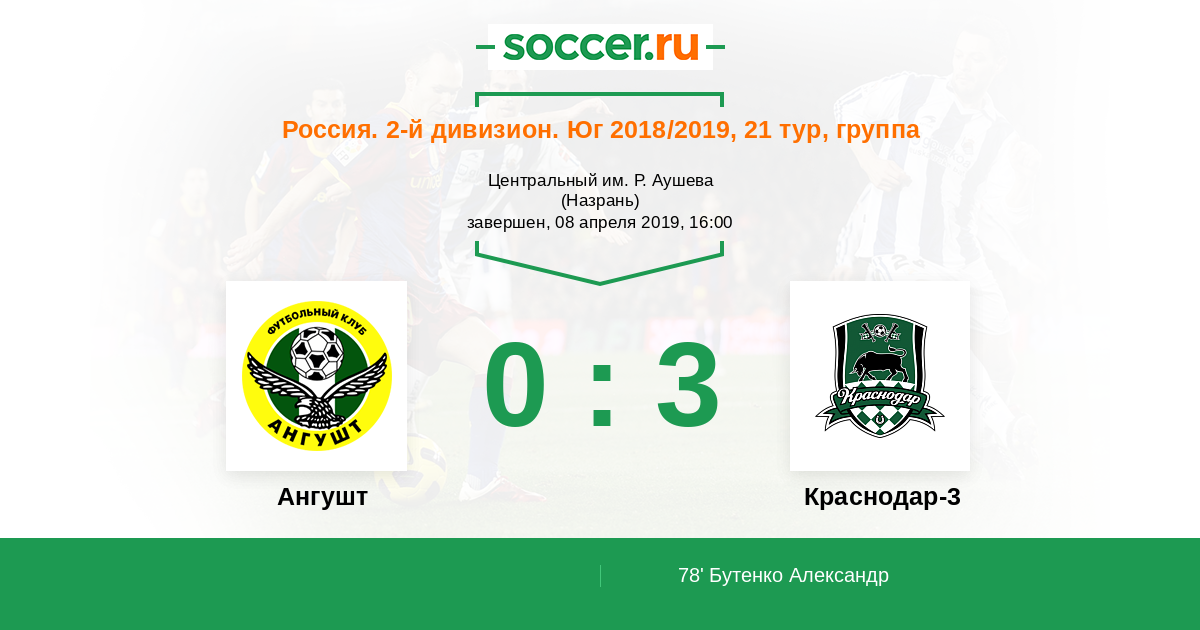 Протокол матча Ангушт против Краснодар-3